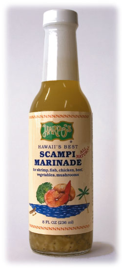 Harpo's scampi marinade is made from all natural ingredients. It contains no chemicals or artificial flavors. It has a one-year shelf life dry storage, and must be refrigerated after opening.